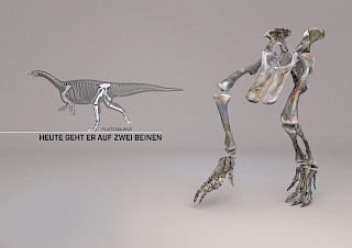 Rekonstruktionen ausgestorbener Tiere wie Dinosaurier beruhen auf wissenschaftlichen Fakten, die sich mit der Zeit durch neue Erkenntnisse verändern. Seit seiner Entdeckung im Jahre 1834 haben Paläontologen Plateosaurus in verschiedenen Gangarten rekonstruiert. Neueste Erkenntnisse zeigen, dass er auf zwei Beinen ging. Wie er sich bewegte, wurde bislang nicht visualisiert.