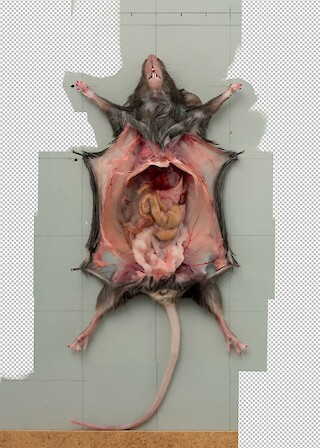 Eine Alternative können anatomische Fotografien sein, die aber um ein Vielfaches unangenehmer anzuschauen sind. Glanzflecken fressen Grossteile des Kadavers aus, starke Kontraste sind häufig gegeben und durch eine optische Krümmung wölbt sich das Bild abstossend. Die Fotografie ist unangenehmer anzuschauen als das Original.