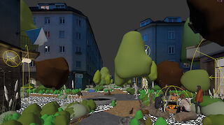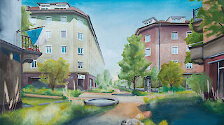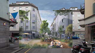 Sie lässt die Betrachtenden in eine entsiegelte und autofreie Strasse im Zürcher Kreis 5 eintauchen. Im praktischen Teil erprobte ich methodisch eine Gestaltung, die analoge und digitale Techniken vereint. Die entstandenen Bilder zeigen eine neuartige und wenig erforschte Bildsprache. Visualisierungen haben die grösste Wirkung, wenn sie in ihrer Formsprache gesamtgesellschaftlich funktionieren und ein breites Publikum ansprechen. Vorstellungen zukünftiger Stadtbilder werden dadurch greif- und diskutierbar.
